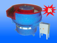 應(yīng)用了國(guó)際上先進(jìn)三元振動(dòng)加工原理。當(dāng)工件、成形磨塊、化學(xué)磨液和水按一定比例放人光整機(jī)的容器中。然后啟動(dòng)振動(dòng)電機(jī)。振動(dòng)電機(jī)軸的上下兩端裝有偏心鐵塊,它們?cè)谒矫嫔系耐队盎コ梢粋(gè)直角,當(dāng)振動(dòng)電機(jī)高速旋轉(zhuǎn)時(shí),兩個(gè)偏心塊產(chǎn)生在水平面內(nèi)沿圓周方向變化的激振力(離心力),使機(jī)體產(chǎn)生水平面內(nèi)的圓周運(yùn)動(dòng),同時(shí)由于激振力不通過(guò)機(jī)體的質(zhì)心。因而產(chǎn)生激振矩(即傾倒力矩)使容器繞水平軸搖擺,由于容器底部呈圓環(huán)形狀、各點(diǎn)的振幅不一致,使容器中的成型磨塊和工件既豎直中心軸線公轉(zhuǎn),又繞圓環(huán)中心翻滾,其合成運(yùn)動(dòng)為環(huán)形螺旋運(yùn)動(dòng),同時(shí)容器有一螺旋升角,成型磨塊和工件沿螺旋面向上滑行,使工件和成型磨塊在運(yùn)動(dòng)時(shí)增加了摩擦力,提高了光整效率。容器為了減少工作中磨塊的和工作對(duì)其的磨損,降低噪音,在其內(nèi)壁掛涂耐磨橡膠或聚氨脂。為了改善工作環(huán)境,又可另外配置消音罩,適用于小中大零件的光整加工。